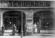 (Foto des Schuhhauses Polatschek mit antijüdischem Transparent).